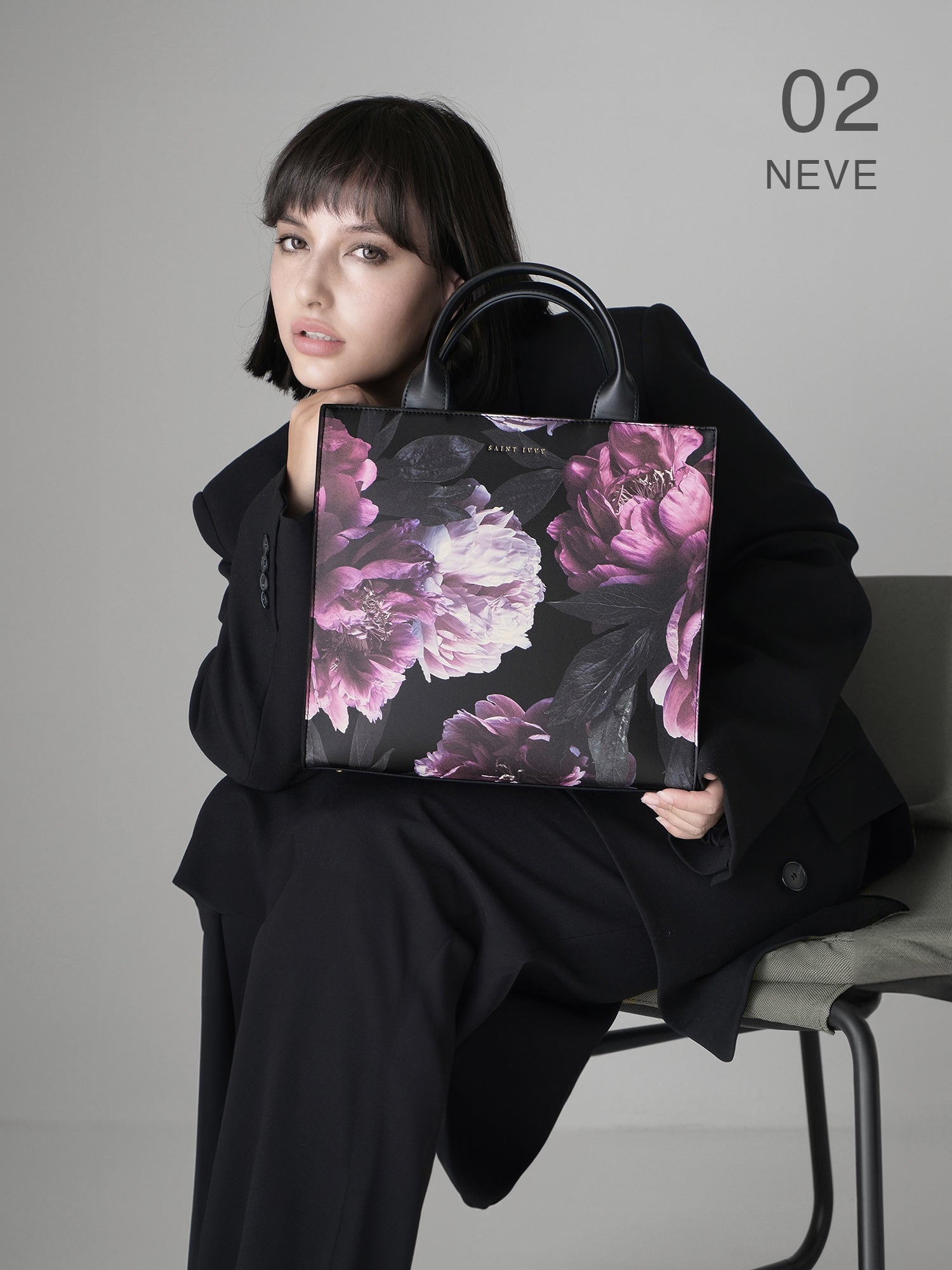 Vibrant, moody dark florals bloom across structured silhouettes, where form meets function. An everyday piece with the presence of something rare.