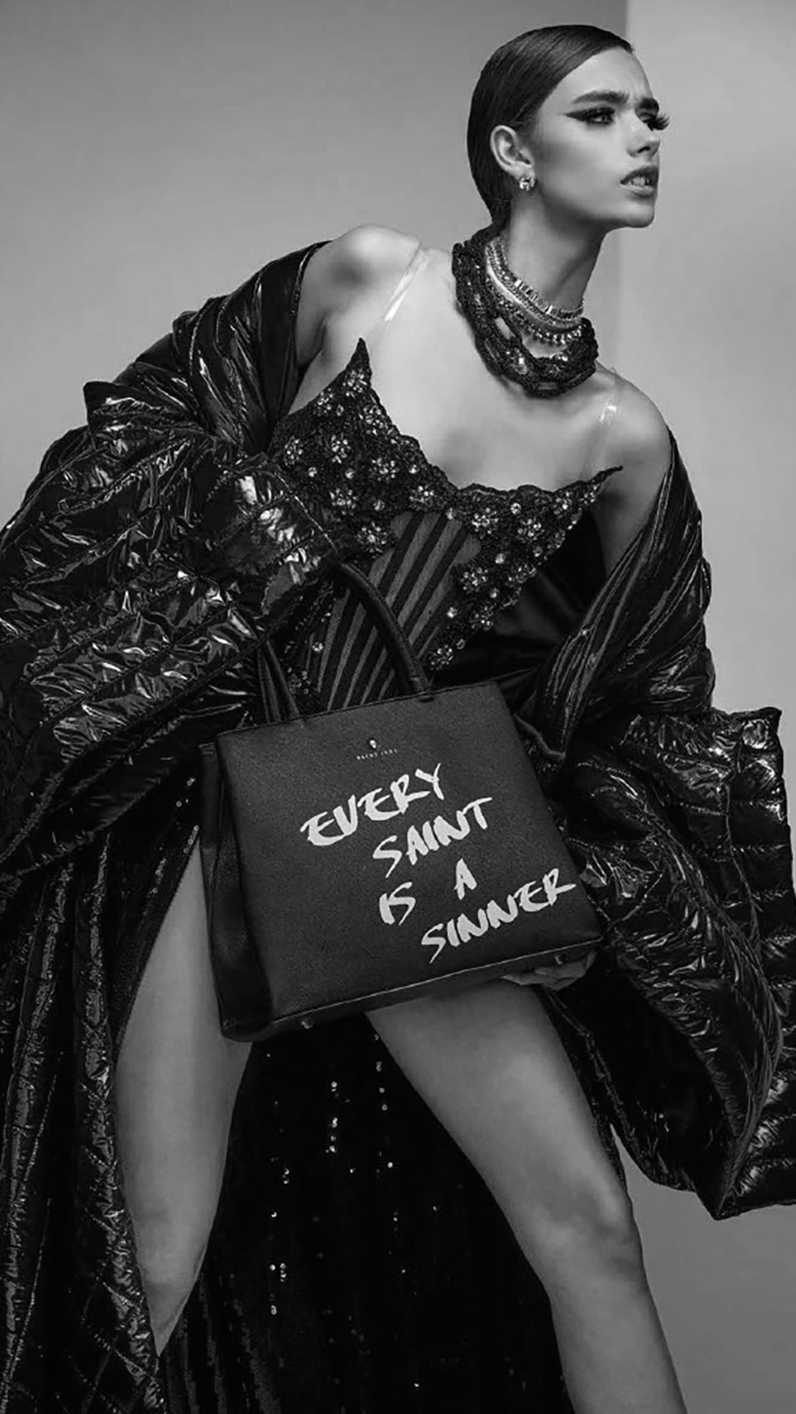 Vibrant, moody dark florals bloom across structured silhouettes, where form meets function. An everyday piece with the presence of something rare.